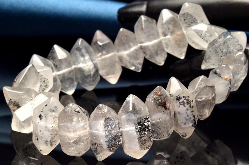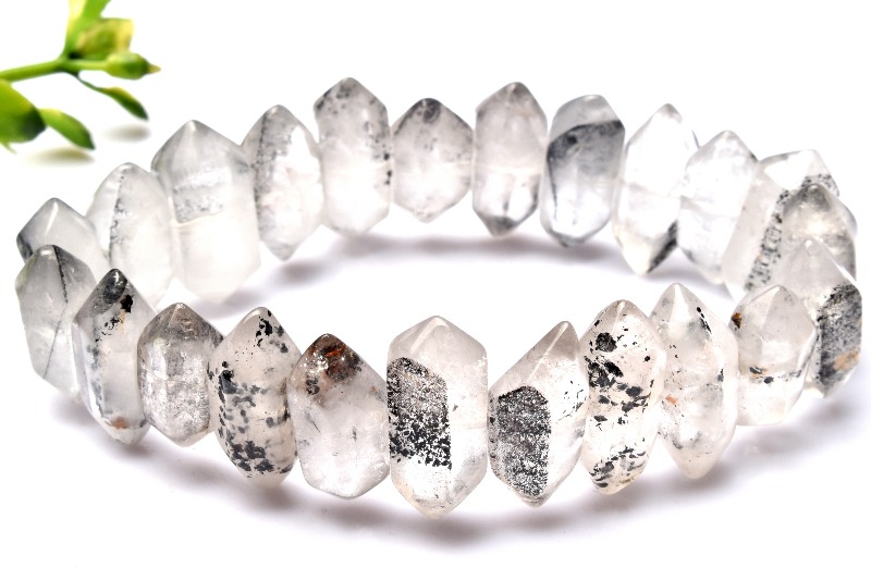 【1点物】希少形状 ブラックスーパーセブン(ブラックレピドクロサイト) 7-9x15-21mm 両剣ポイント ブレスレット _MA39
