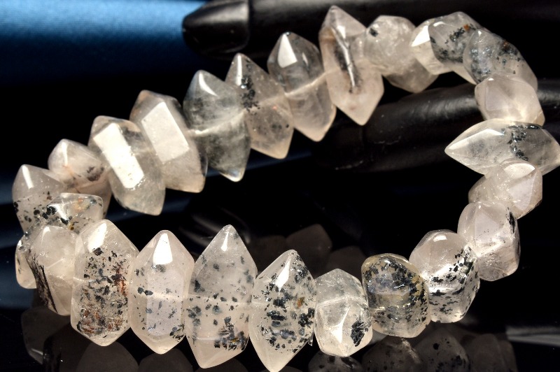 【1点物】希少形状 ブラックスーパーセブン(ブラックレピドクロサイト) 7-9x14-20mm 両剣ポイント ブレスレット _MA40