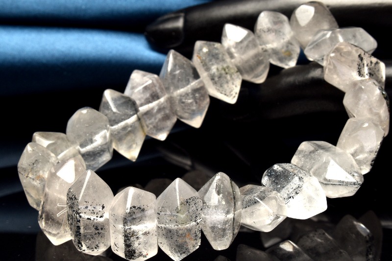 【1点物】希少形状 ブラックスーパーセブン(ブラックレピドクロサイト) 8-10x17-21mm 両剣ポイント ブレスレット _MA42