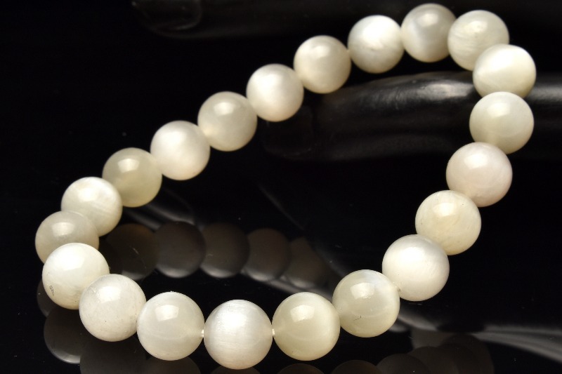 【1点物】キャッツアイ効果 ホワイトラビットヘアールチルクォーツ 8.5mm ブレスレット _MA87