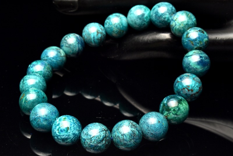 【1点物】高発色◇ペルー産 クリソコラ 10.5mm ブレスレット _MA112