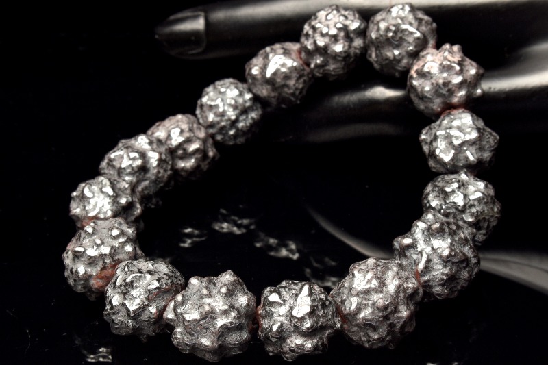 【1点物】希少◇エジプト産 メテオライト(鉄隕石) 14mm ブレスレット _MA149