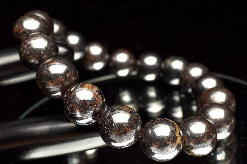 【1点物】サハラ砂漠産 コンドライト隕石(サハラNWA869隕石) 11mm ブレスレット _MA243