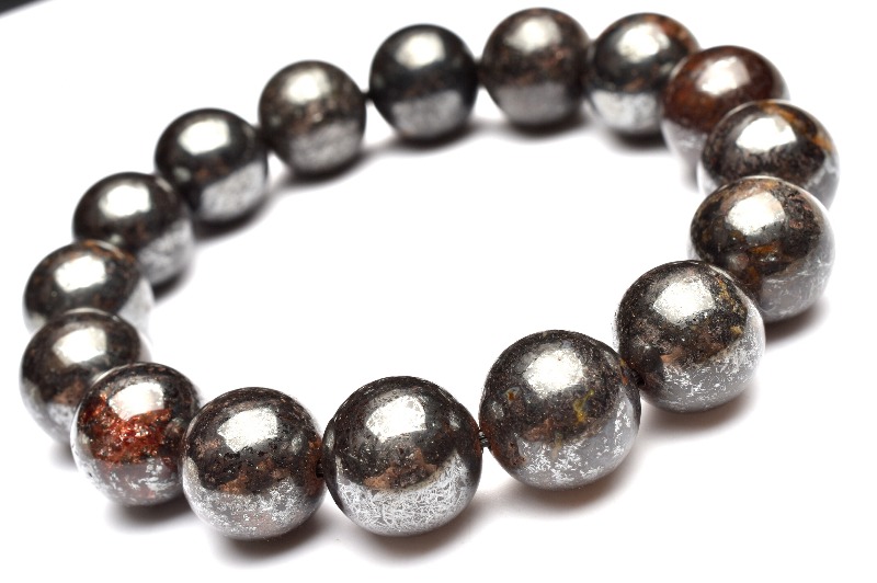 【1点物】サハラ砂漠産 コンドライト隕石(サハラNWA869隕石) 12.5mm ブレスレット _MA248