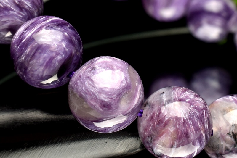 チャロアイトという名前の由来には、シベリアのチャロ川流域で発見された事とする説と、ロシア語の(Charo魅惑)から名づけられたという説がありますが、後者の方が有力であるとされています。その名の通り、この石の個性的な模様は、見る人を魅了してやみません。まさに、「魅惑の宝石」にぴったりな石です。