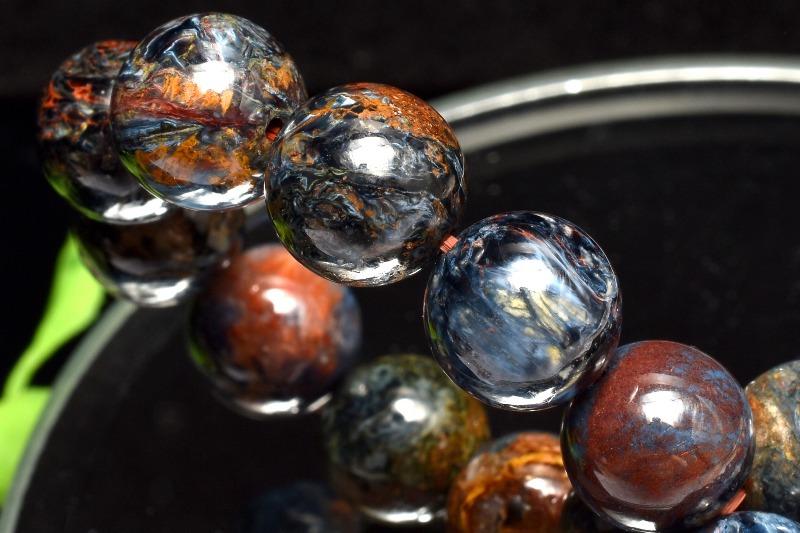 一般的にはタイガーアイ系の茶褐色が多いですが、ブルータイガーの青系もあり、茶と青の混じったものもあります。