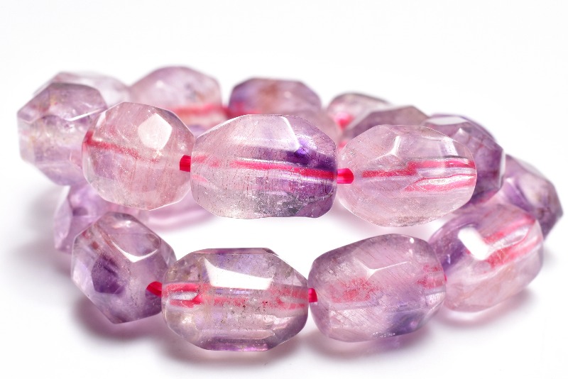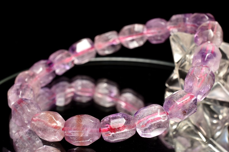 パワーストーンの定番アメジストに、細かなゲーサイトやレピドクロサイトが入っているアメジストスーパーセブンです。