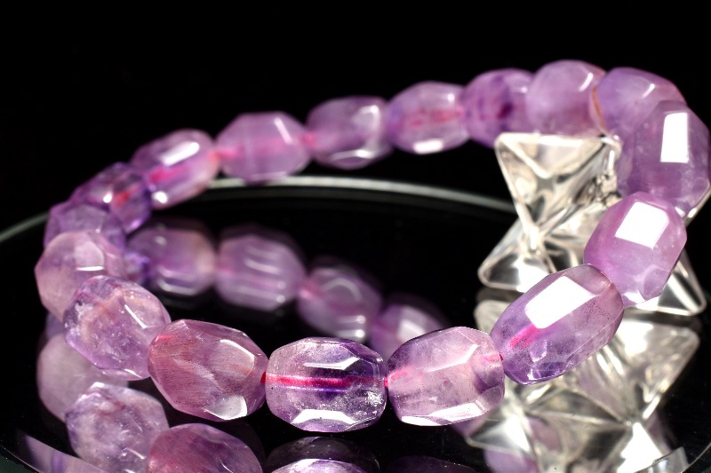 パワーストーンの定番アメジストに、細かなゲーサイトやレピドクロサイトが入っているアメジストスーパーセブンです。