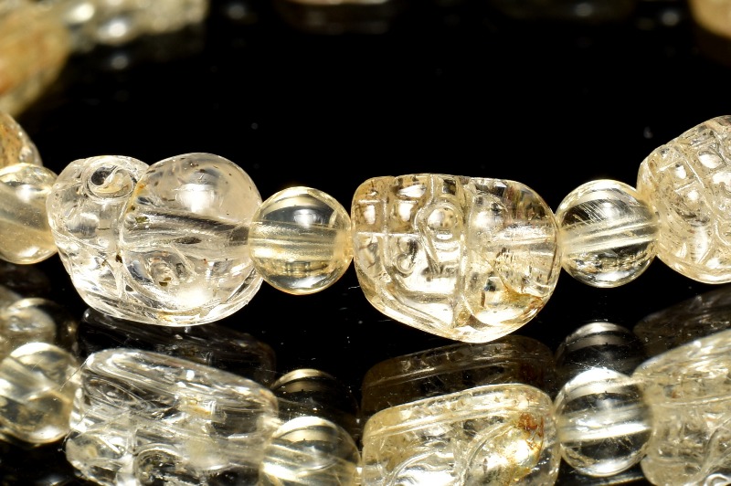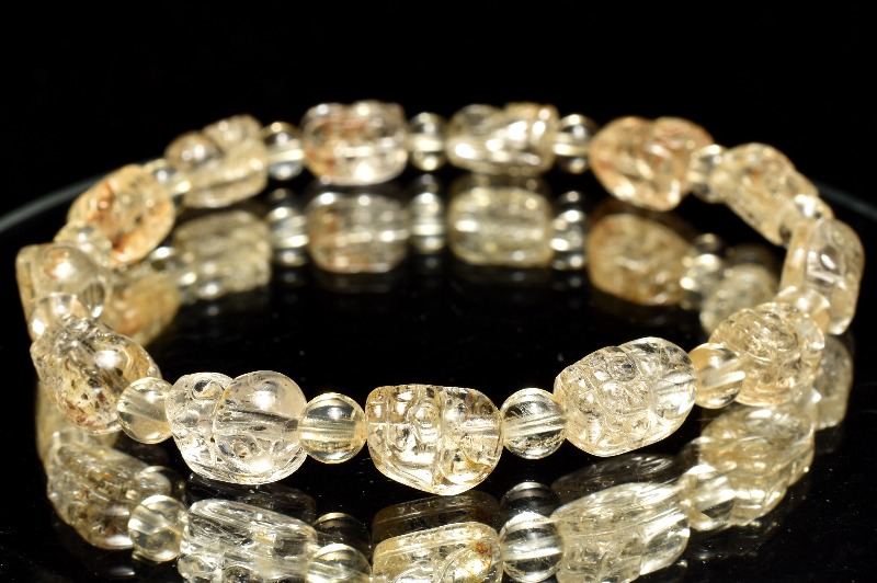 【1点物】希少◇黄金の守り ゴールデンスキャポライト 9-10x7(丸玉4.5)mm 貔貅彫刻 ブレスレット _MA407