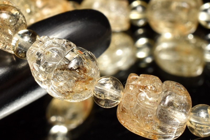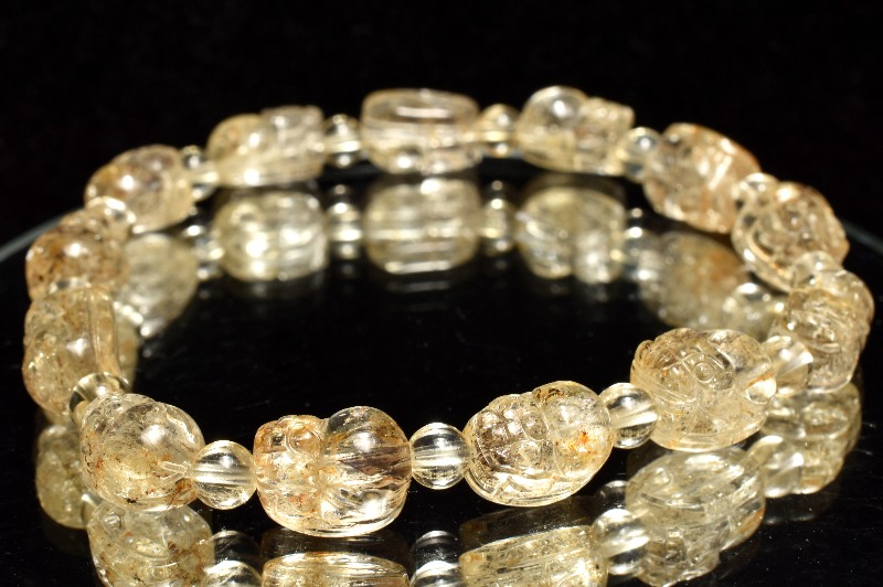 【1点物】希少◇黄金の守り ゴールデンスキャポライト 10.5x7.5(丸玉4.5)mm 貔貅彫刻 ブレスレット _MA412