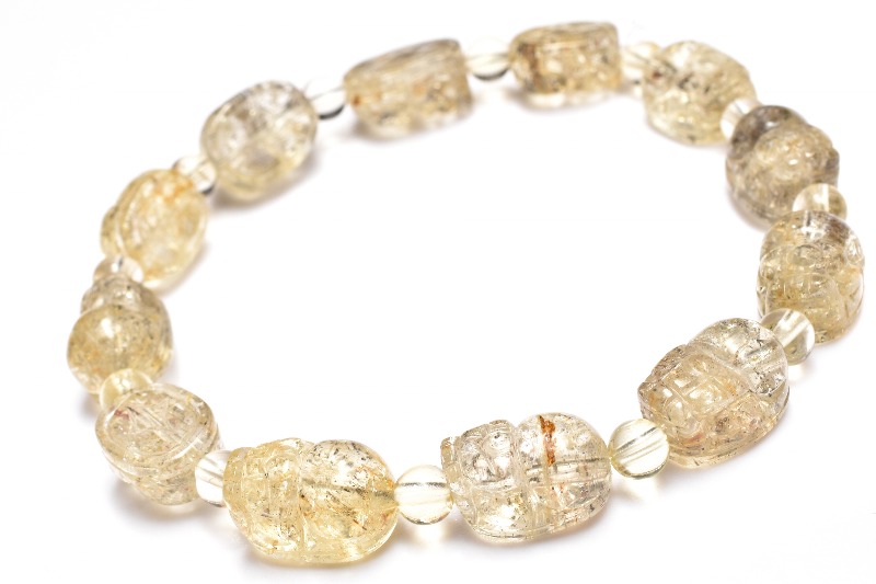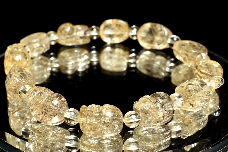【1点物】希少◇黄金の守り ゴールデンスキャポライト 12x9(丸玉4.5)mm 貔貅彫刻 ブレスレット _MA414