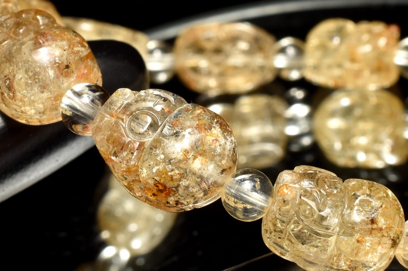 【1点物】希少◇黄金の守り ゴールデンスキャポライト 11.5-13.5x8-9(丸玉4.5)mm 貔貅彫刻 ブレスレット _MA415