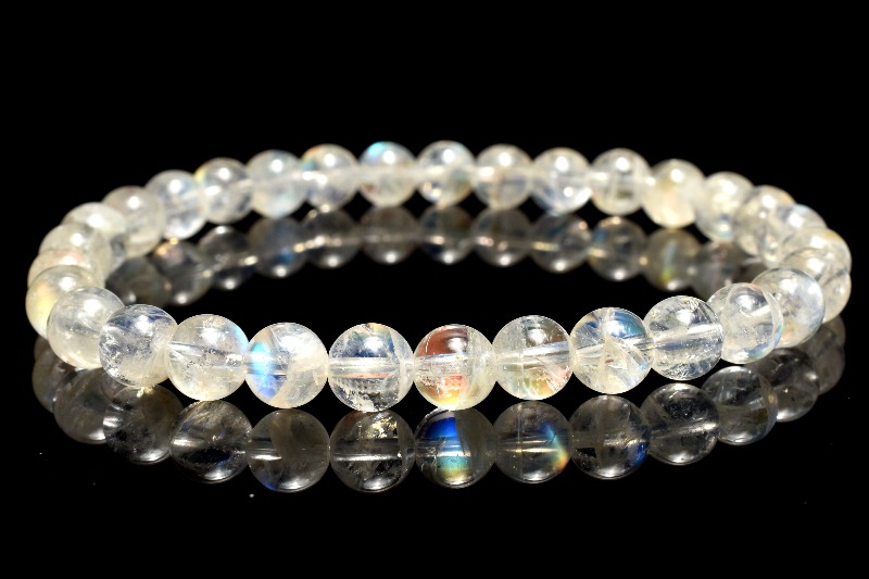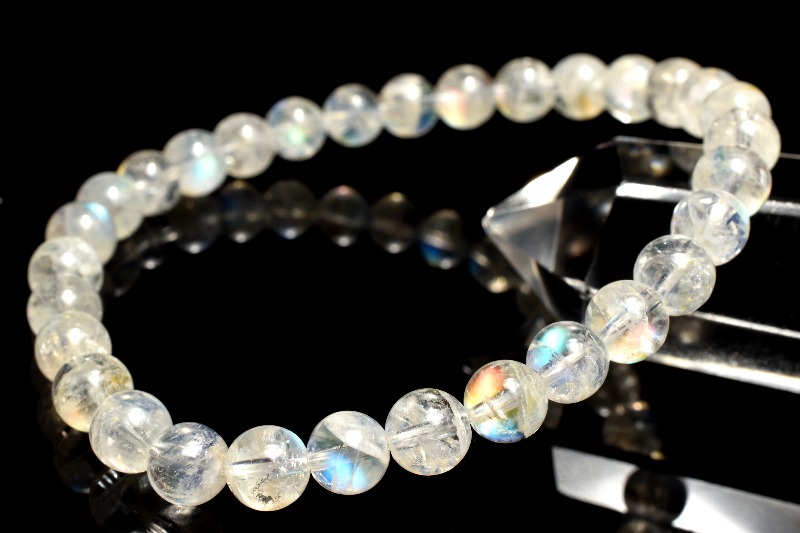 【1点物】AAA+オーロラシラー☆マダガスカル産 レインボームーンストーン 6mm ブレスレット _MA448