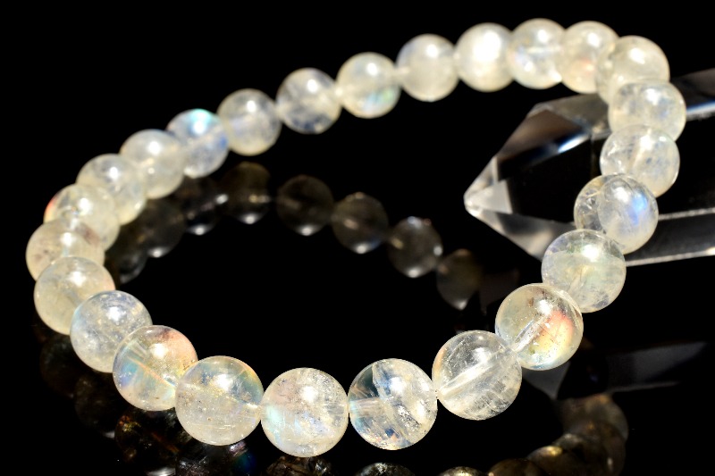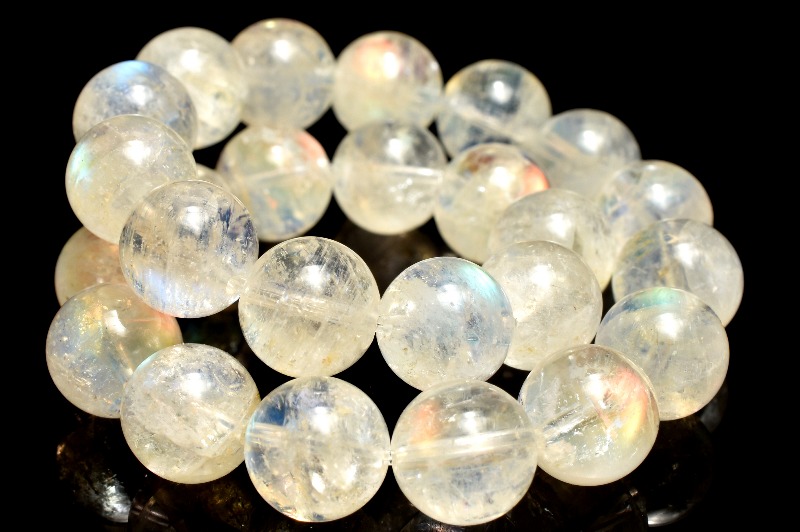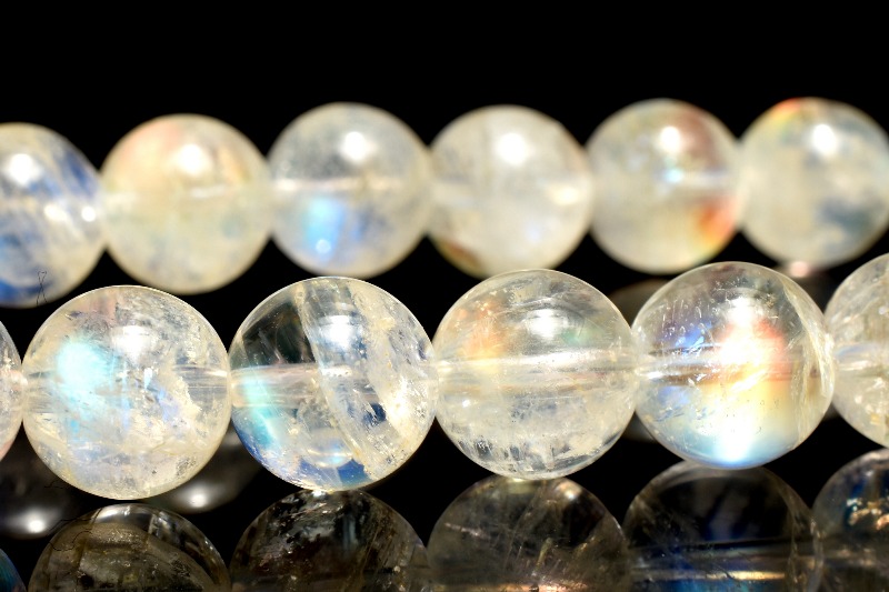 今回入荷分は非常に高品質でムーンストーン自体の透明感が高く、様々なカラーのレインボーシラーを一層ご堪能いただけます。