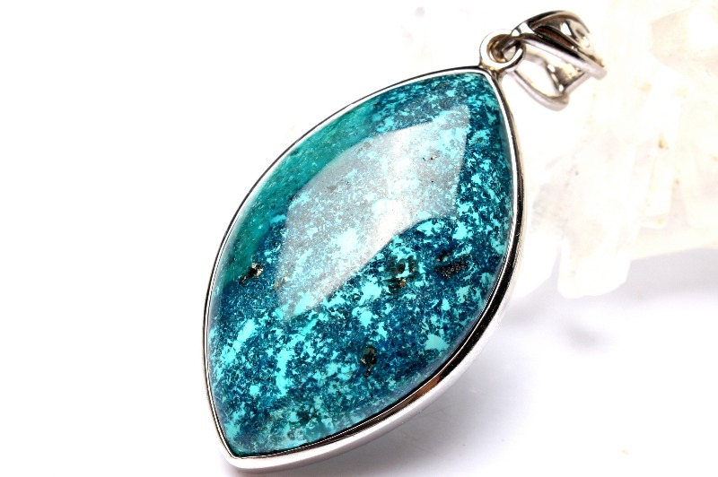 特徴・意味ブルーグリーンの発色が美しく、天然由来の幻想的な模様が見ていて飽きないペンダントトップです。