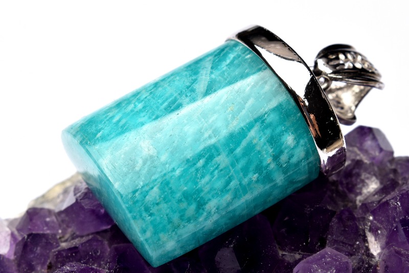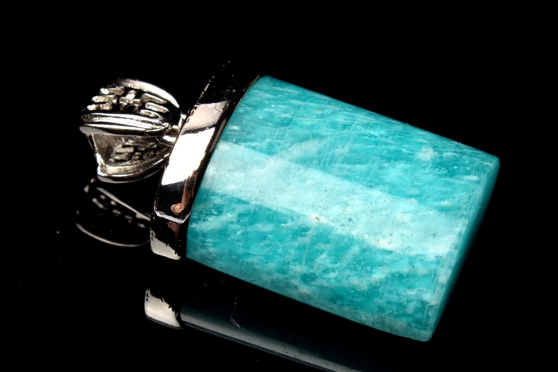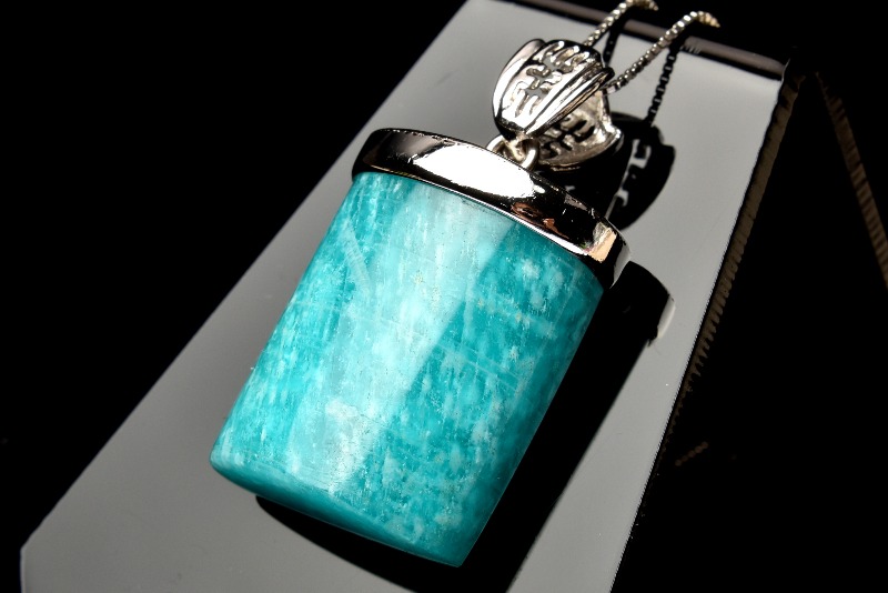 アマゾナイトのブルーとシルバー枠の相性が良く上品な印象のペンダントトップです。