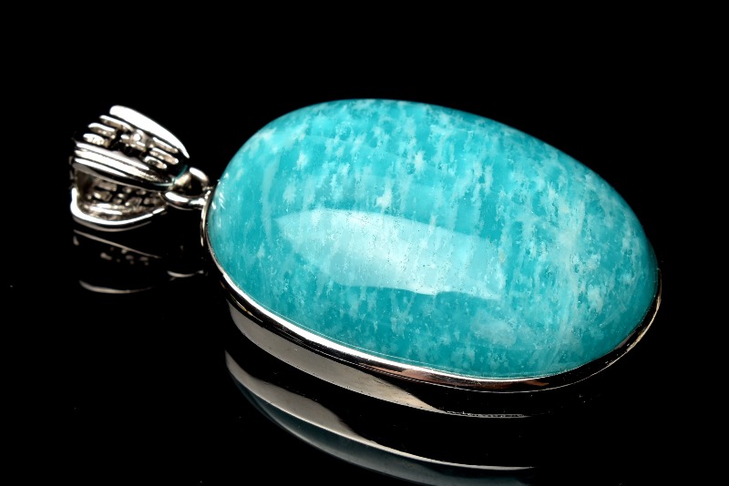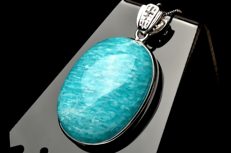 アマゾナイトのブルーとシルバー枠の相性が良く上品な印象のペンダントトップです。