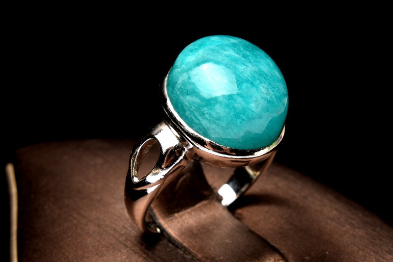 【1点物】Silver925◇ロシア産 アマゾナイト 14x12mm オーバル 指輪リング(サイズ調整可) _PC2495