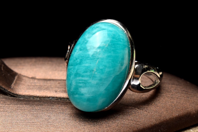 【1点物】Silver925◇ロシア産 アマゾナイト 17x11mm オーバル 指輪リング(サイズ調整可) _PC2497
