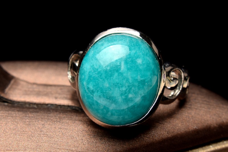 【1点物】Silver925◇ロシア産 アマゾナイト 14x12mm オーバル 指輪リング(サイズ調整可) _PC2501
