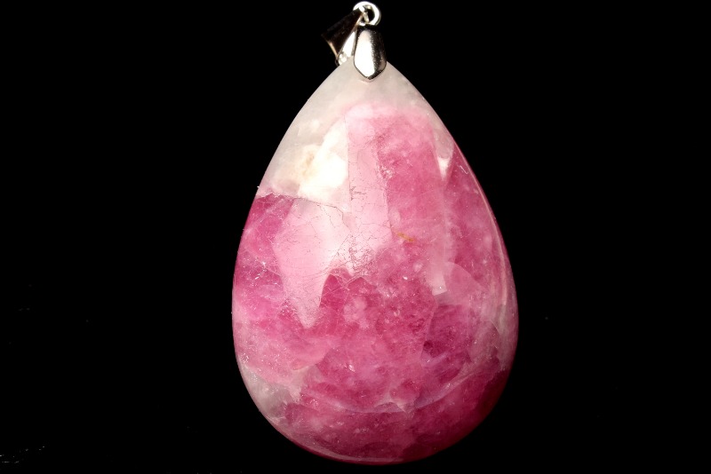 【1点物】Silver925◇高発色 ピンクトルマリンシリカ 36x25mm ドロップ ペンダントトップ _PC2514