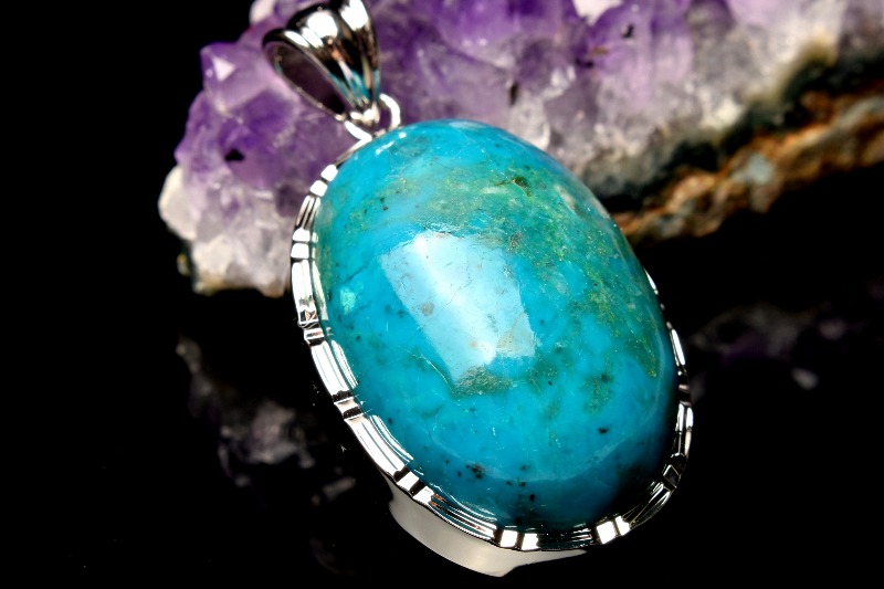 ブルーが本体の多くを占め、グリーンやブラウンなどのカラーが混ざり合って、出来ているため、丸く加工されたクリソコラは、宇宙から見た地球のような外観となっています。