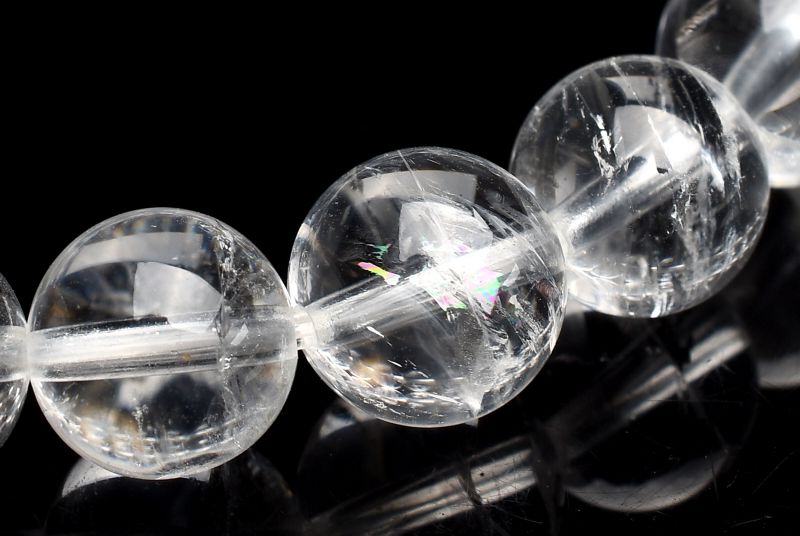 透明度が高く、稀にクラックが虹色に輝く珠がございます。