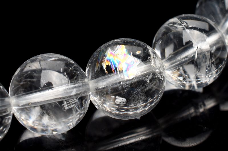 透明度が高く、稀にクラックが虹色に輝く珠がございます。