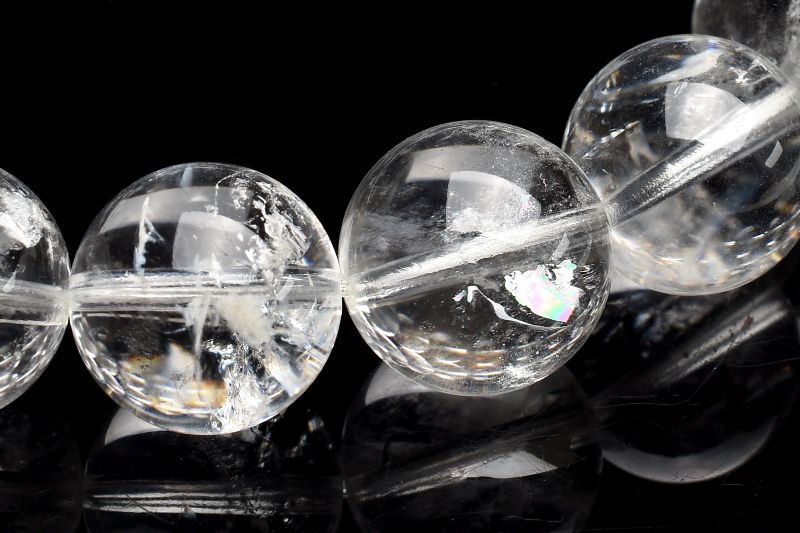 透明度が高く、稀にクラックが虹色に輝く珠がございます。
