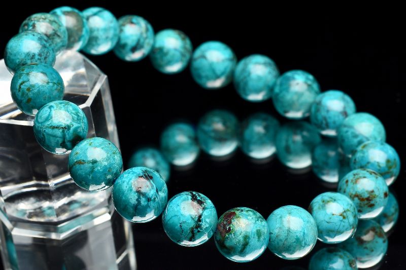 ブルーが本体の多くを占め、グリーンやブラウンなどのカラーが混ざり合って、出来ているため、丸く加工されたクリソコラは、宇宙から見た地球のような外観となっています。