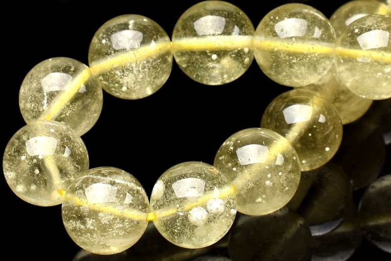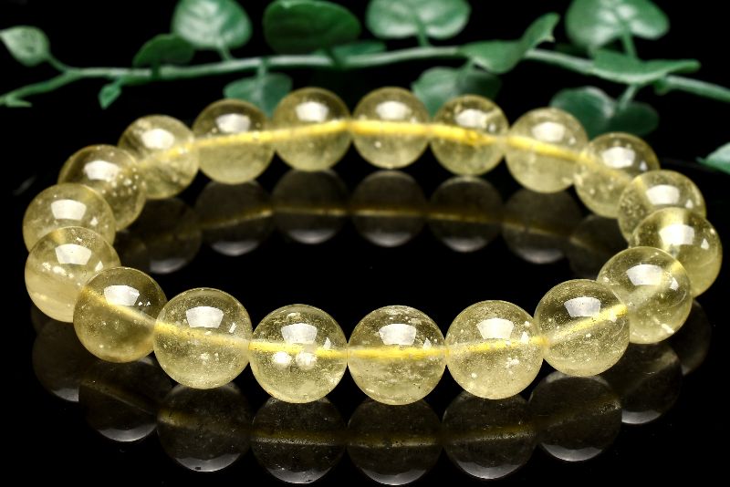 【1点物】透明感あり◇クリストバイライト内包 リビアングラス 10mm ブレスレット _U5871