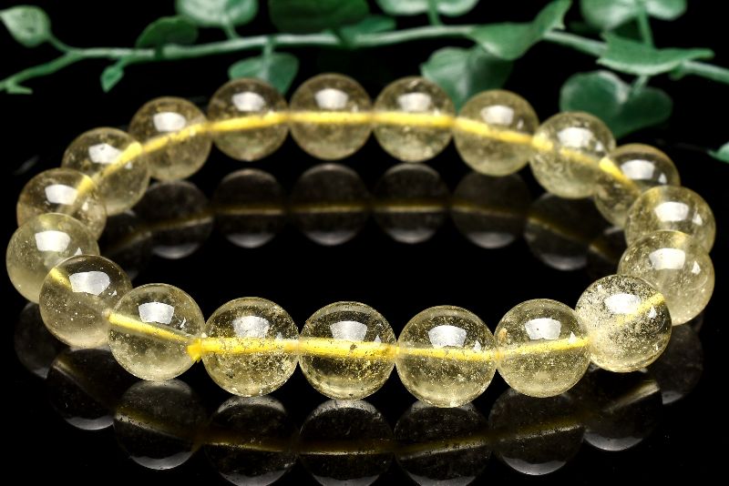 【1点物】透明感あり◇クリストバイライト内包 リビアングラス 10mm ブレスレット _U5872