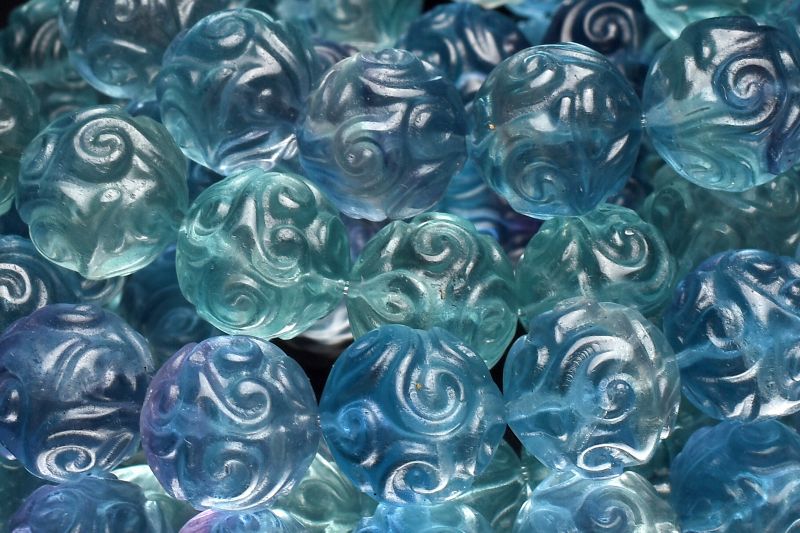 繊細彫刻◇ブルーパープル フローライト 13.5mm マニ車 ブレスレット 1個売り _B1415