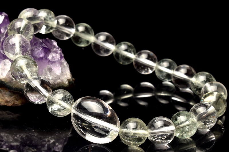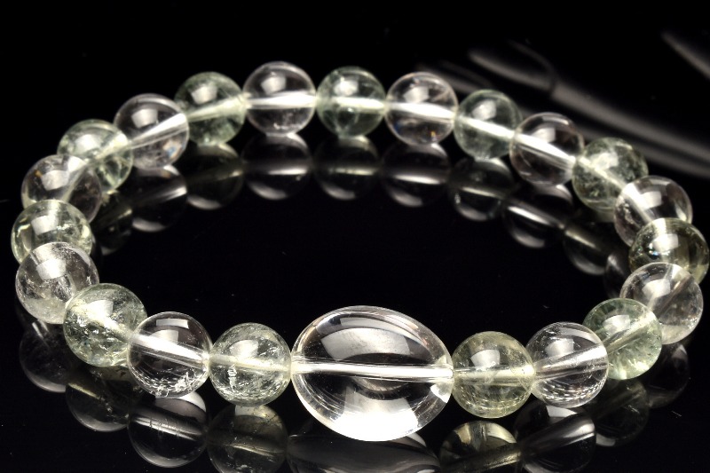 【1点物】グリーンアメジスト&水晶 16x12.5(丸玉8)mm ブレスレット _MA479