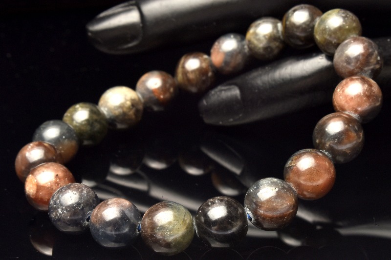 サファイアの結晶構造が見られる珠もあり原石好きのコレクター様にもオススメのブレスレットです。