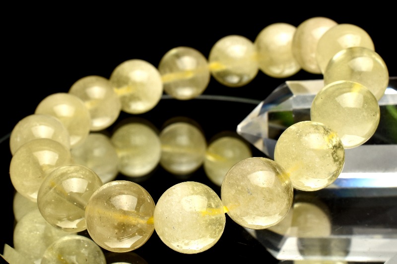 【1点物】透明感あり!クリストバライト内包 リビアングラス 11.5mm ブレスレット _MA582