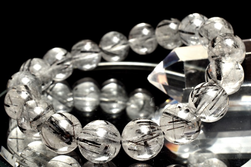 材質ブラックトルマリンインクォーツ 11mm 産地:ブラジル