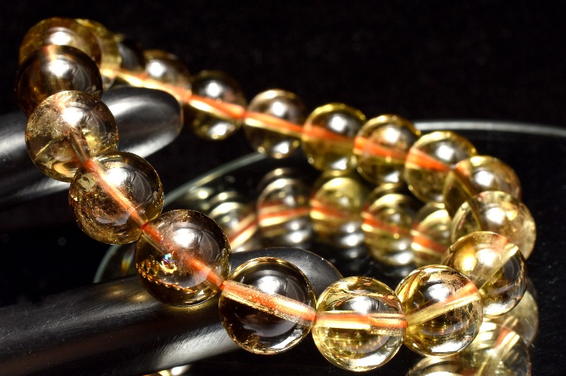 シトリンのゴールドの輝きと、スモーキークォーツの美しいブラウンカラーが見事に溶け合い、不思議な陰影を見せてくれます。天然での非加熱の物は特にグラデーションになっていたり、粒玉の中自体で二層になっていたりと、とても特徴的な見た目をしています。
