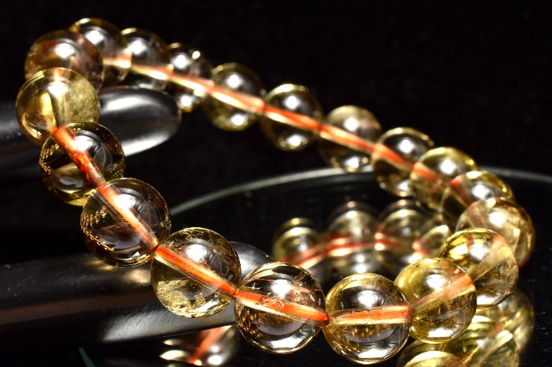 シトリンのゴールドの輝きと、スモーキークォーツの美しいブラウンカラーが見事に溶け合い、不思議な陰影を見せてくれます。天然での非加熱の物は特にグラデーションになっていたり、粒玉の中自体で二層になっていたりと、とても特徴的な見た目をしています。