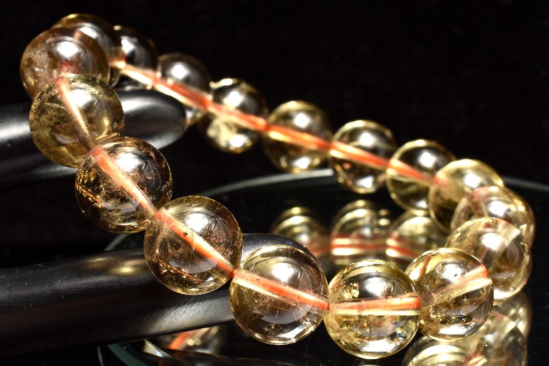 シトリンのゴールドの輝きと、スモーキークォーツの美しいブラウンカラーが見事に溶け合い、不思議な陰影を見せてくれます。天然での非加熱の物は特にグラデーションになっていたり、粒玉の中自体で二層になっていたりと、とても特徴的な見た目をしています。