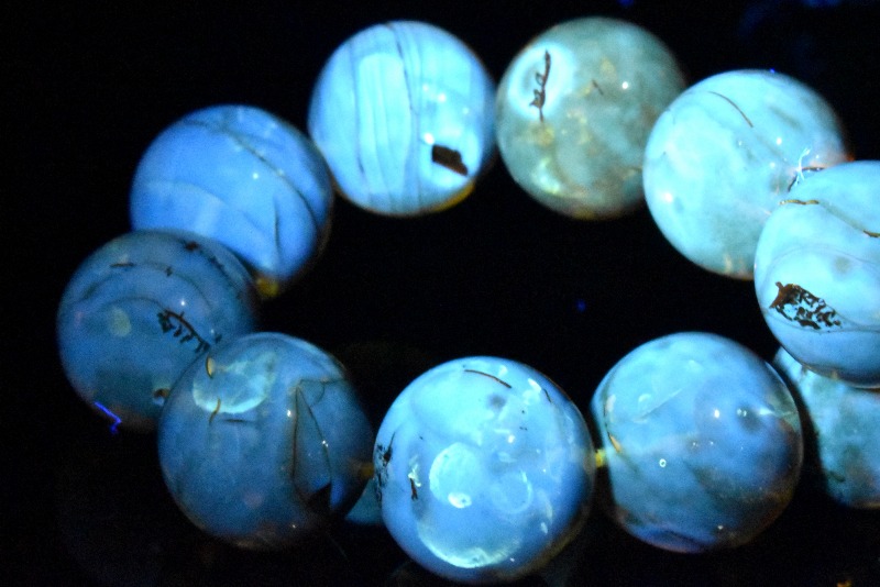 UVライトを当てると青く発光し、とても幻想的です。