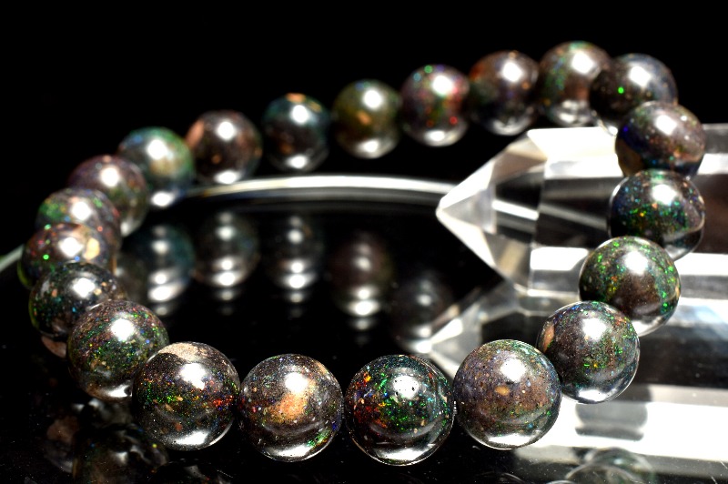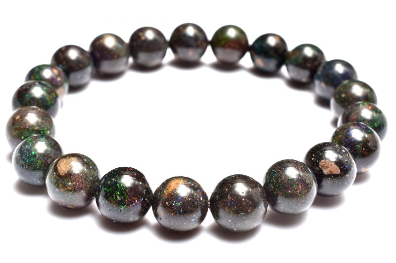 【1点物】遊色効果◇宇宙のよう ブラックマトリックスオパール 9.5mm ブレスレット _MA735
