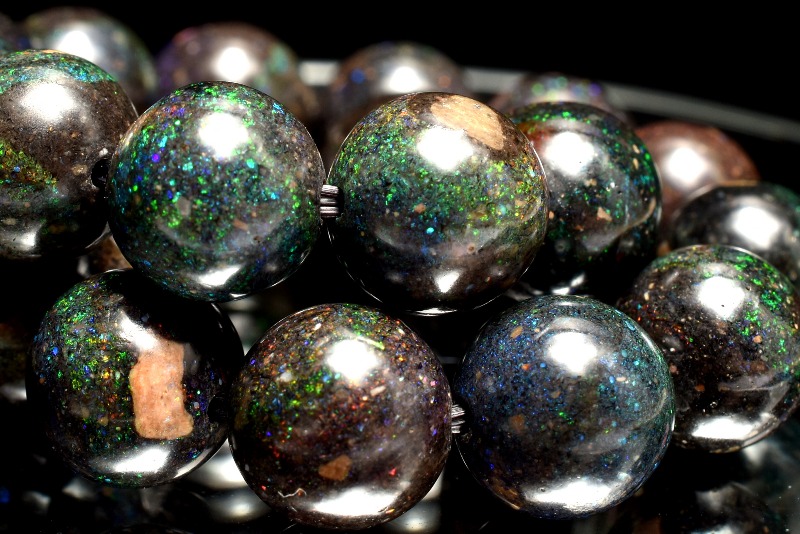 肉眼でも遊色は見られますが、強い光に当てると、まるで宇宙を見ているかのようにキラキラと煌めく美しいタイプ。
