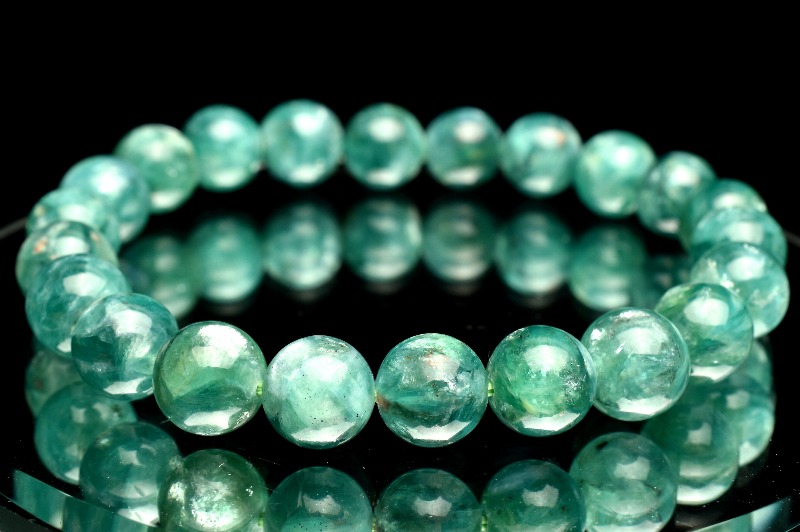 【1点物】AAAA高発色◇フックサイト入り グリーンマイカ 8.5mm ブレスレット _MA823