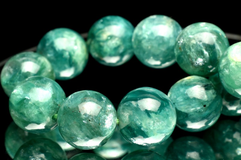 【1点物】AAAA高発色◇フックサイト入り グリーンマイカ 10.5mm ブレスレット _MA824