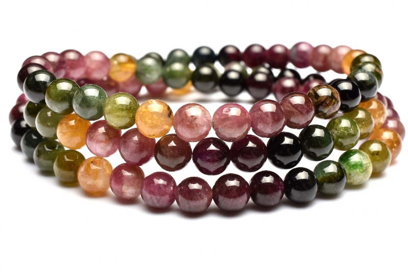 【1点物】カラフル MIXトルマリン 6mm 3連タイプ ブレスレット _MA894