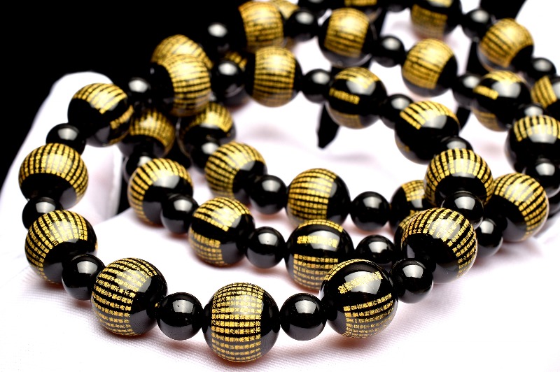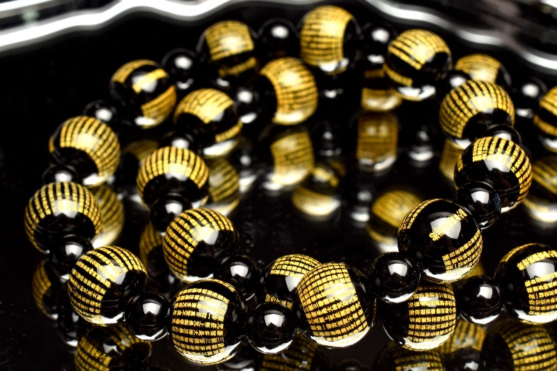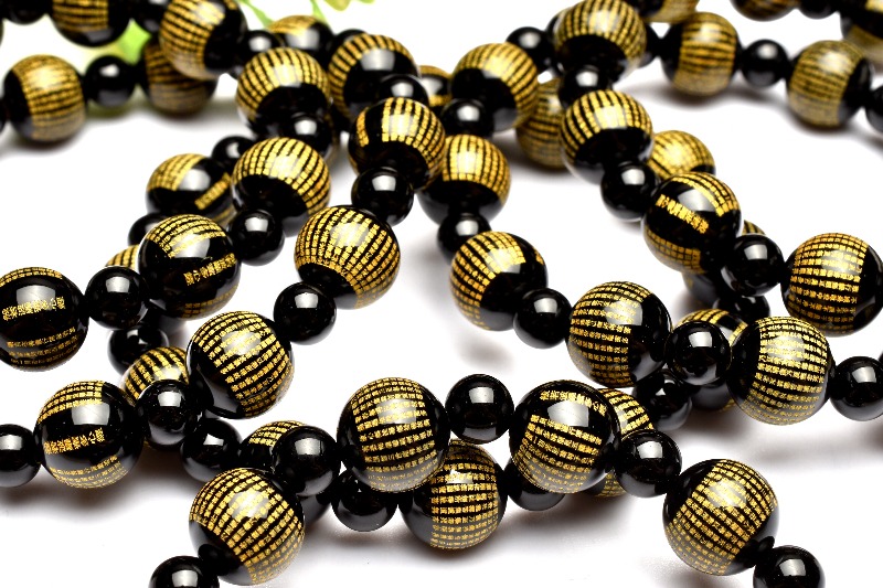 お守りに! オニキス 10(丸玉6)mm 般若心経彫刻 ブレスレット 1個売り _BG5635-10