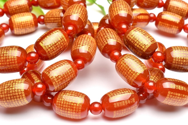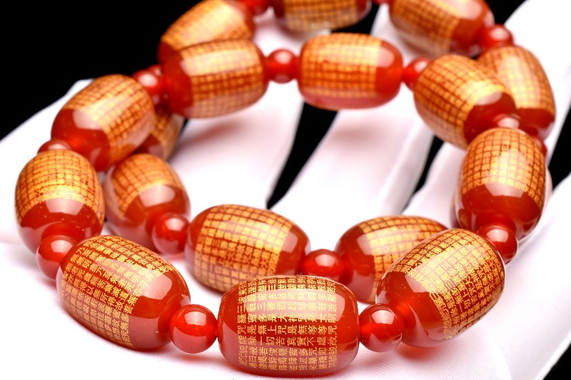 お守りに! カーネリアン 12-13x17-18(丸玉6)mm 般若心経彫刻 チューブ ブレスレット 1個売り _BG5639