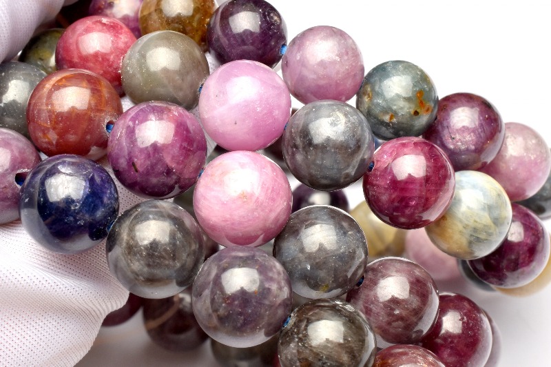 南アフリカ産◇ライトカラー MIXサファイア(コランダム) 12.5mm ブレスレット 1個売り _BG5642-125
