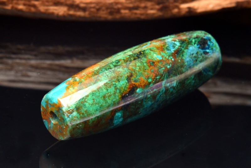【1点物】高発色ブルー クリソコラ 33x11mm 天珠型(貫通穴) ビーズ _PC2577